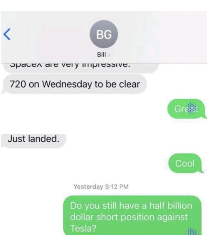 Elon Musk talks leak over Bill Gates selling short
