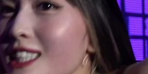 TWICE MOMO’s short shiny top and bottom.