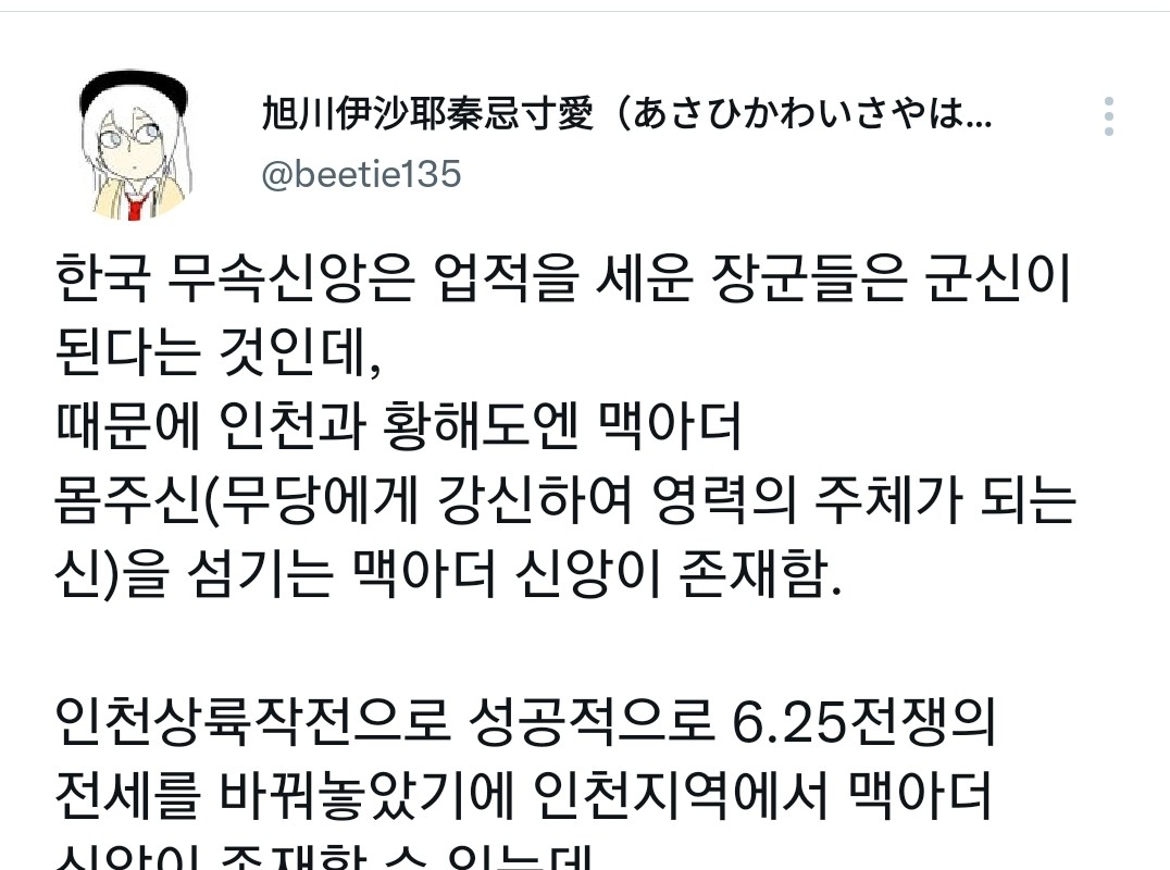 In Korean shamanism, a general who has made achievements becomes a military god