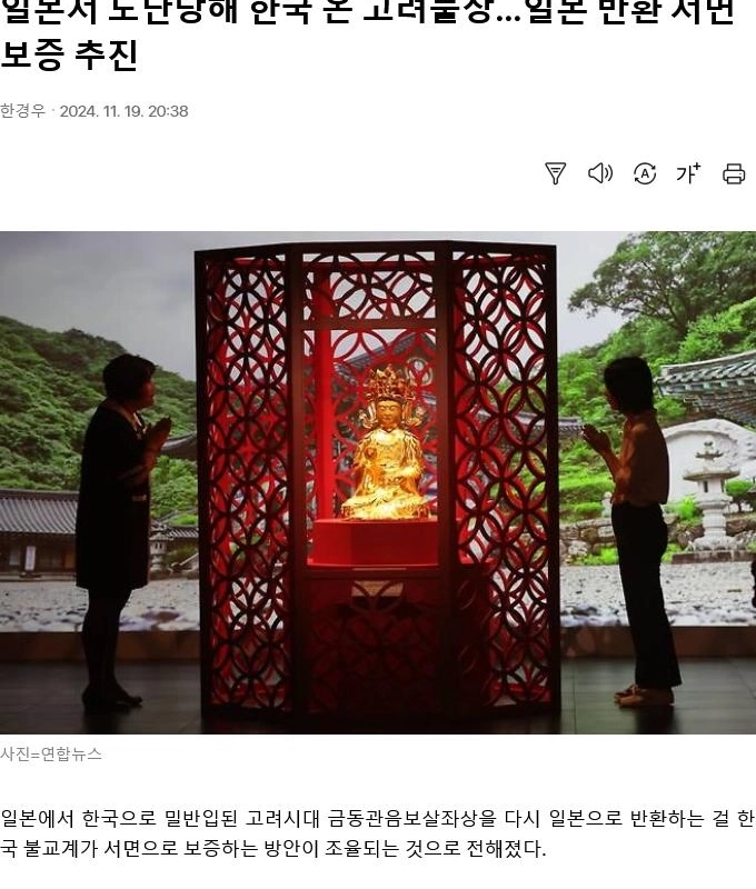 The return of the Goryeo Buddha statue to Japan is being promoted.