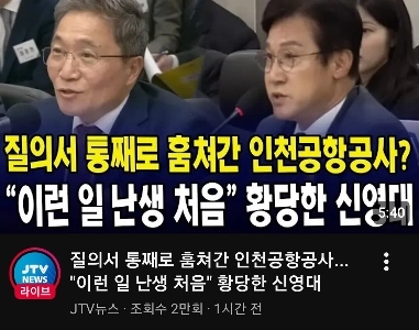 11:52 12/18/2025 Rep. Shin Young-dae. Last night, the Incheon International Airport Corporation cooperation officer stole the entire government audit questionnaire and was in trouble.