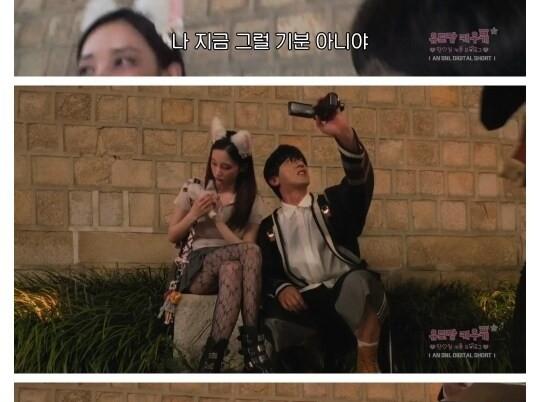 00:40 11/26/2024 (SOUND)QWER Magenta, who tames the broth with a white bralette cleavage under a denim jacket