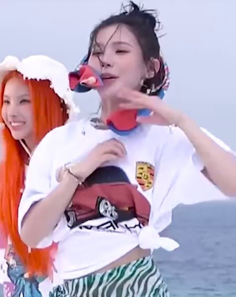 14:45 08/4/2024 Water Bomb Sunmi’s Scorpion Choreography Green Bikini Bowed Down Showing Her Cleavage Moving