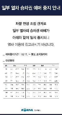 18:24 10/16/2025 Notice on Korea Railroad Corporation’s suspension of ticket reservations for some trains