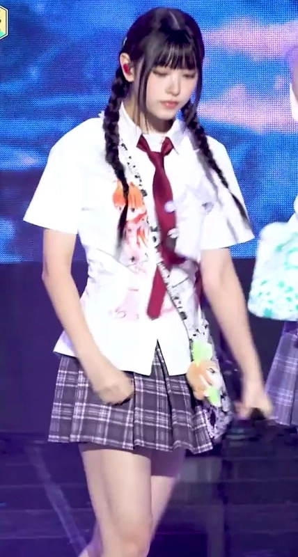 03:40 10/5/2024 New Jeans Haerin school look, pigtails, braided hair, checked skirt, turned underpants exposed