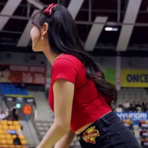 (SOUND)Hanna Kim cheerleader, bulging red tee