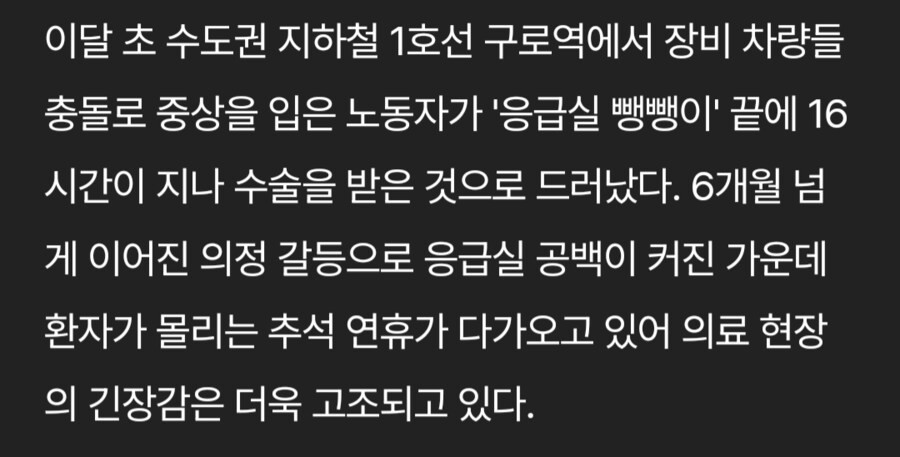 15:49 08/26/2024 Guro Station accident patient undergoes surgery in 16 hours after being hit and run in the emergency room.