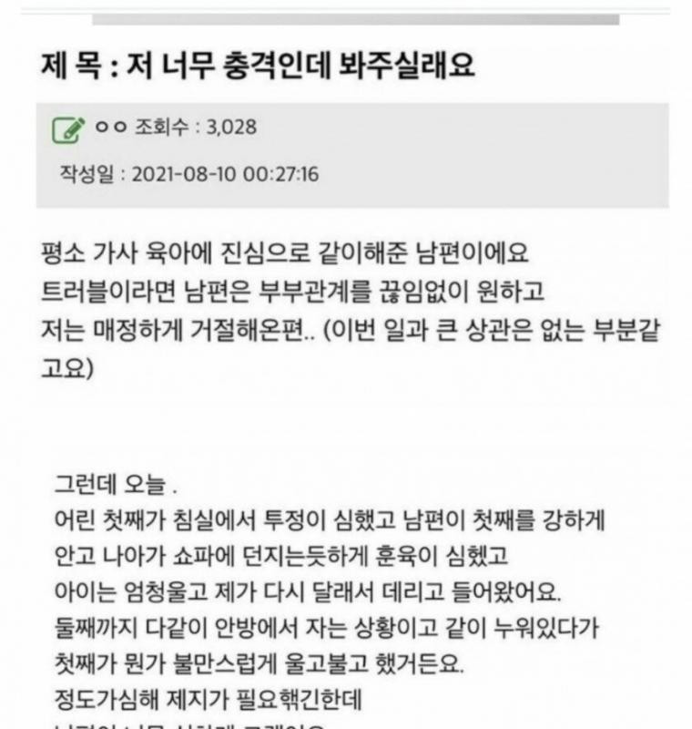 남편한테 배빵맞아 충격받은 아내