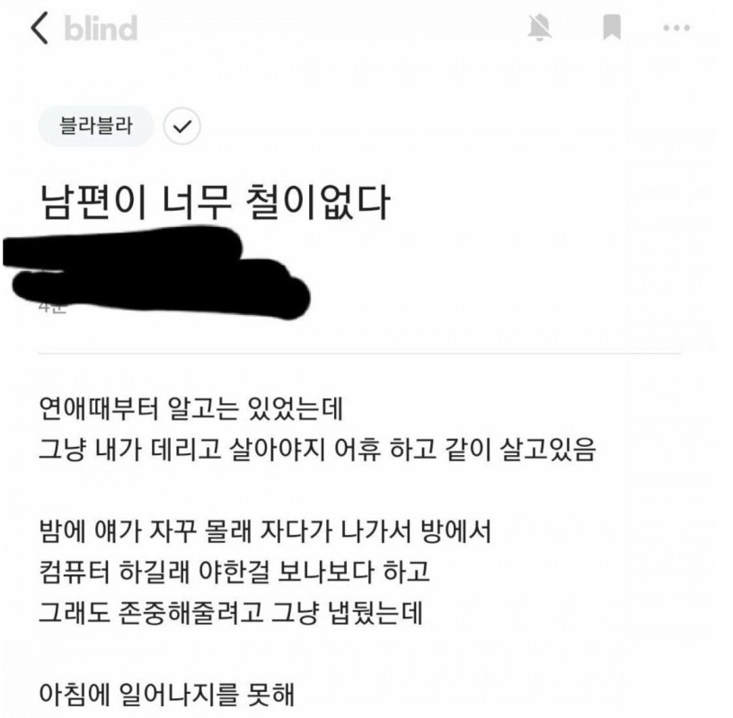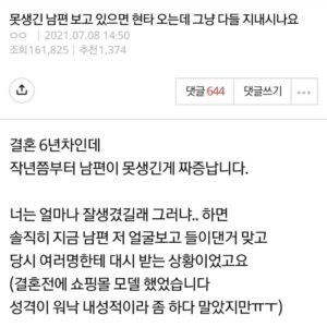 An ugly husband is a wife who comes to mind when she sees him.pann