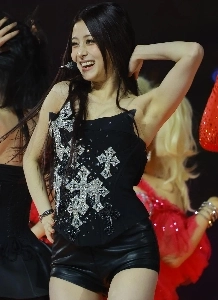 Le Seraphim Heo Yun-jin leather lingerie look dizzying cleavage hot pants thighs