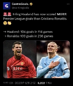 Holland surpasses Ronaldo’s PL career goals tally