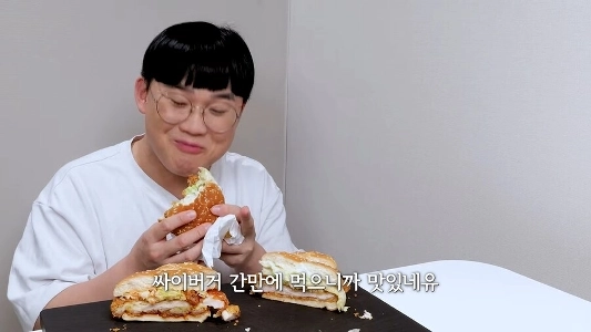 I’m looking at the black and white review of Lotteria’s Calm Man Burger.