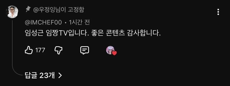 Imjjang commented on Woojeonging’s cucumber video lol.