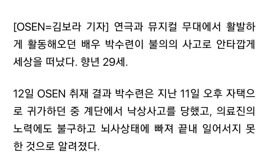 Actor Park Soo-ryeon died in an unexpected accident…He was 29 years old