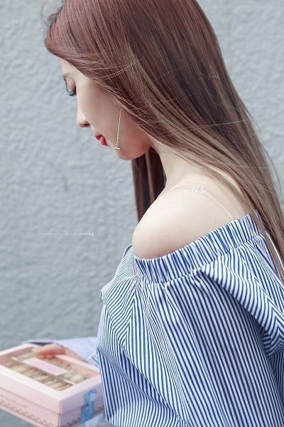 White thigh off-shoulder tank top TWICE SANA