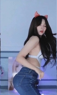 08:38 12/3/2025 Black one-off shoulder, Momo bouncing her upper cleavage and sticking out her jeans butt