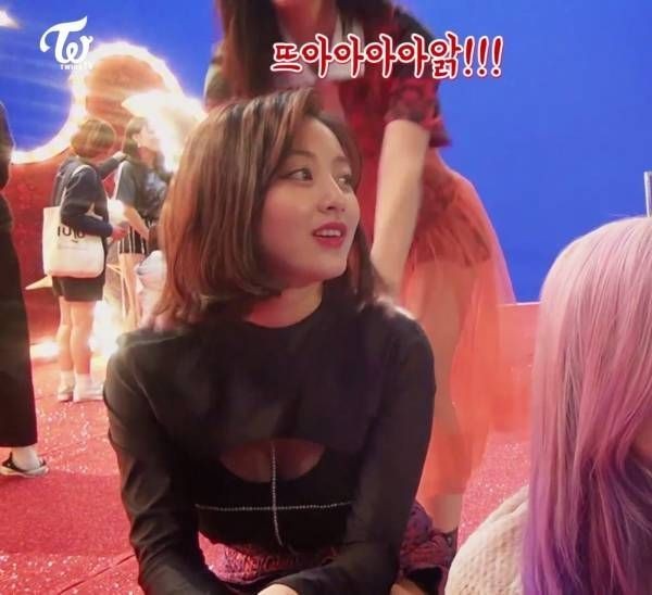 TWICE JIHYO looks like she tanned a black heart tube top