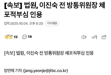 19:54 10/4/2025 [Breaking News] Court, Lee Jin -sook, former chairman of the chairman of the chairman