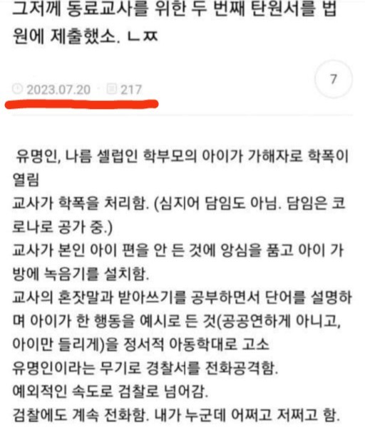 15:45 08/29/2023 circumstantial evidence of ‘kakaotalk abuse against special teacher Joo Ho-min’…Filing a plea for leniency
