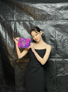 09:25 01/1/2025 Kang Mina exposes her cleavage in a red carpet white dress that is gathered and bowed to the highest level ever.