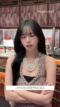 05:37 12/3/2025 (SOUND)Karina’s heavy chest volume in a black top that looks like snowflakes sprinkled on it – W