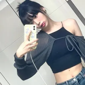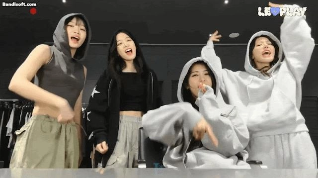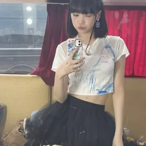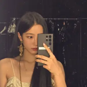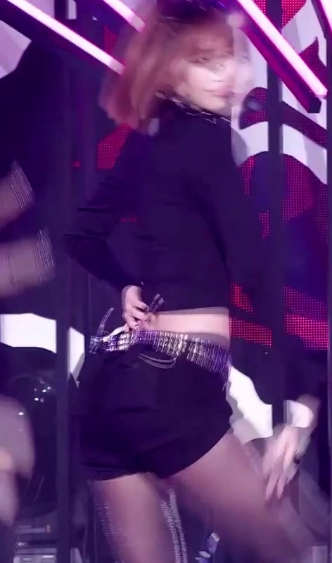 10:23 12/4/2024 Star-studded black crop top belly button + glitter gums thighs Le Seraphim Kim Chae-won