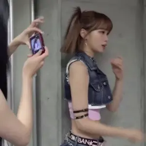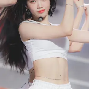 20:11 11/19/2024 Le Seraphim Kim Chae-won’s belly button white thighs in black crop zip-up + dolphin pants