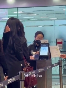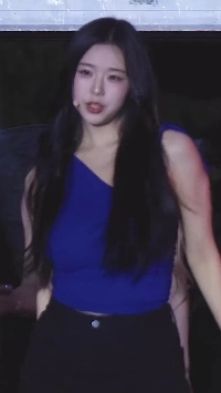 15:42 10/8/2025 Black bra strap sticking out, red one-off shoulder, Triple S Kim Chae-yeon breastpiece