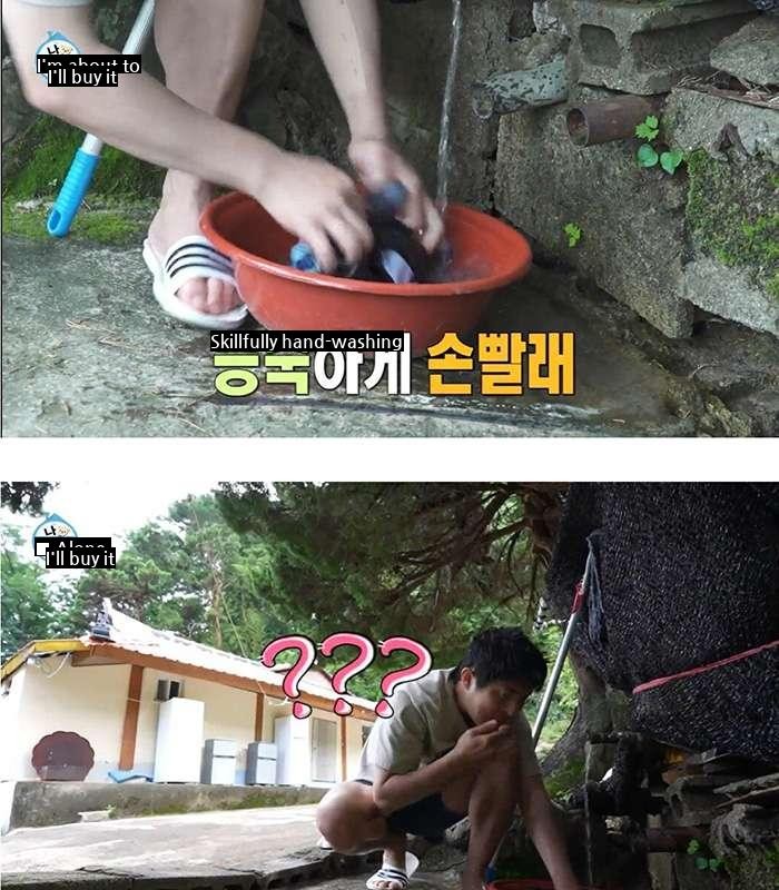 Seo Hyunjin takes out the laundry.