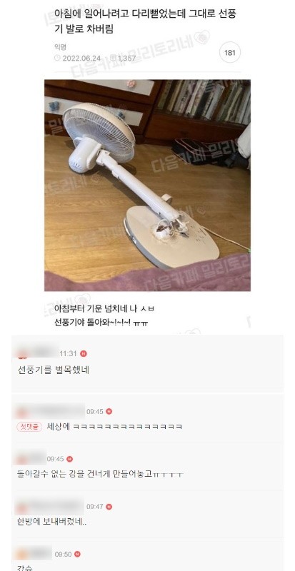 아침에 일어나려고 다리 뻗었는데