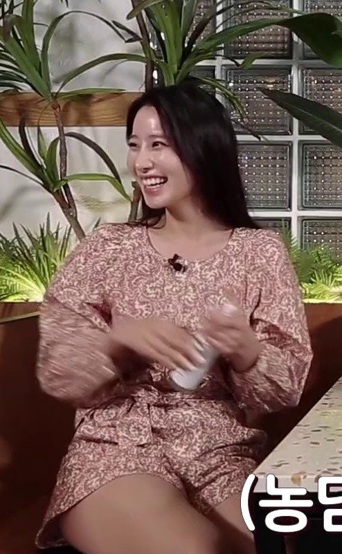 Cho Hyun with crossed legs.