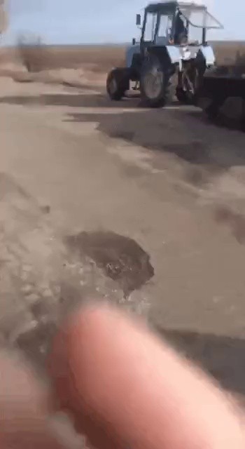 Ukrainian farmer stealing Russian military maintenance as a tractor.