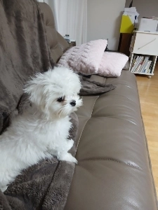 Maltese welcoming its owner