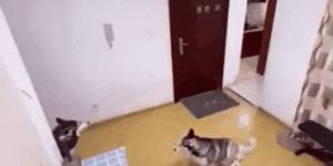 Dog manners after delivery.