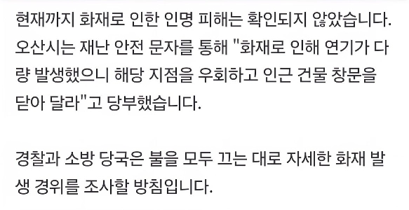 05:26 11/9/2025 [Breaking News] Level 1 fire response issued at food ingredients mart in Osan, Gyeonggi Province