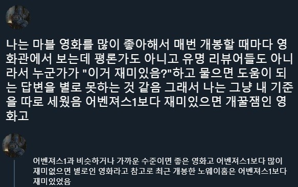 Someone’s criteria for evaluating Marvel movies.