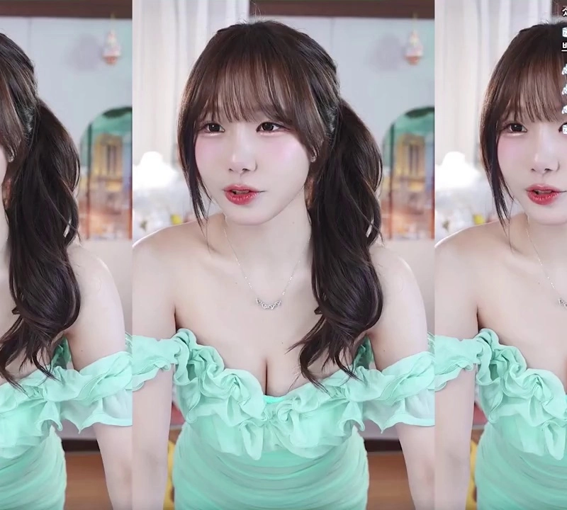 22:49 12/17/2024 (SOUND)Hagi Legend wearing a green Dongtan Missy look with a mint-colored bra sticking out.