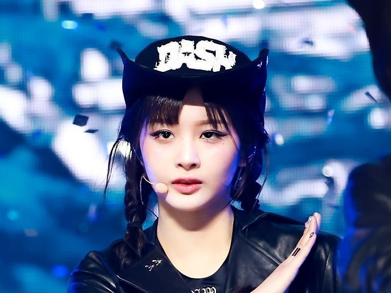 Leather bread hat jumper underneath the strap crop top Nmix Seol Yoon hip-line