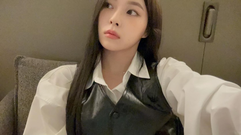 White strap sleeveless shirt under a jean jacket. Haewon abs belly button