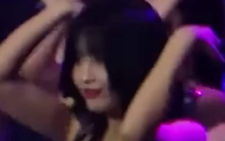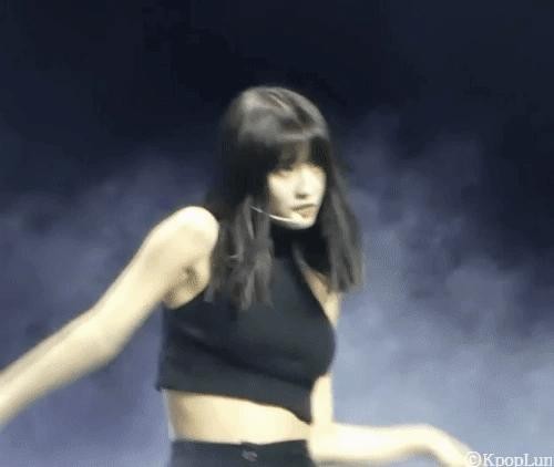 TWICE MOMO wearing a black tube top and doing fan service