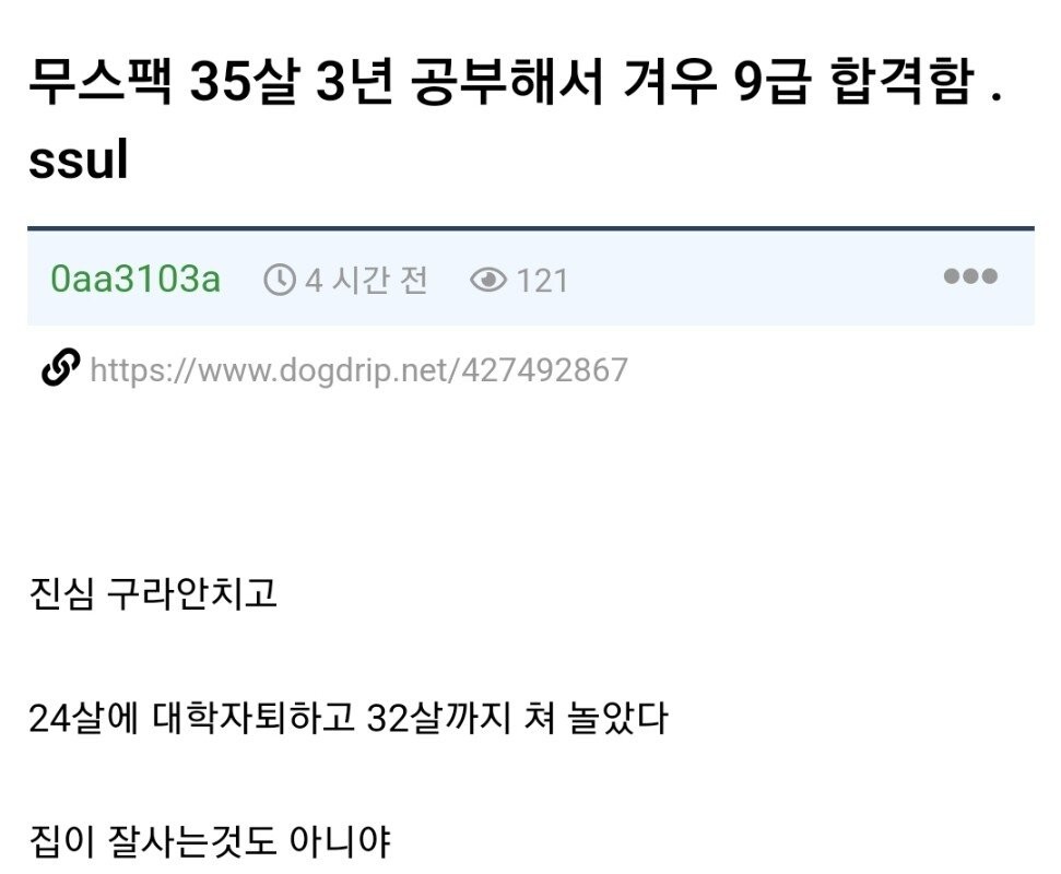 Muspac 35 years old, studied for 3 years and passed grade 9