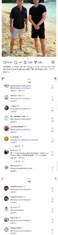 19:32 12/1/2024 YouTuber with 300 million subscribers [Mr. Beast] left a comment requesting rescue on Rosé’s Instagram.
