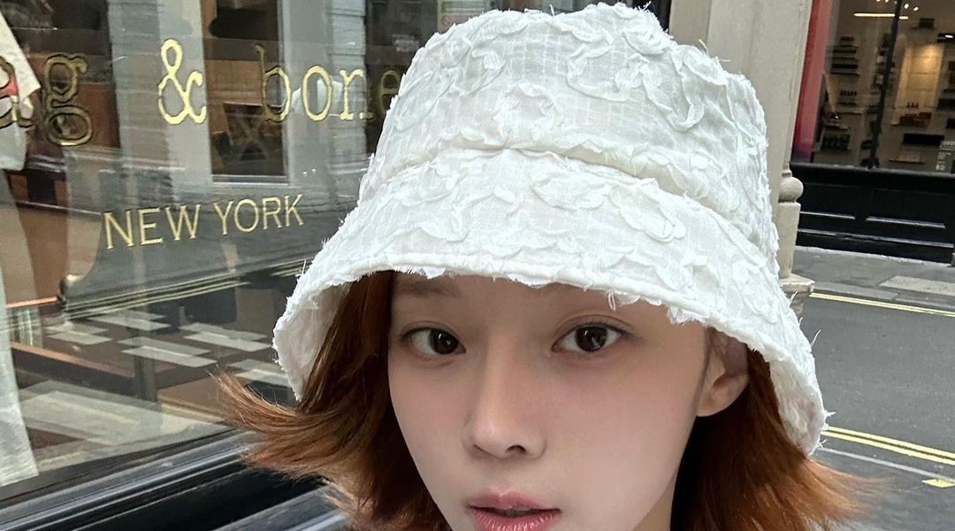08:45 10/2/2023 ITZY white cropped t-shirt with a soft X-shaped sleeveless waist belly button ITZY Yuna