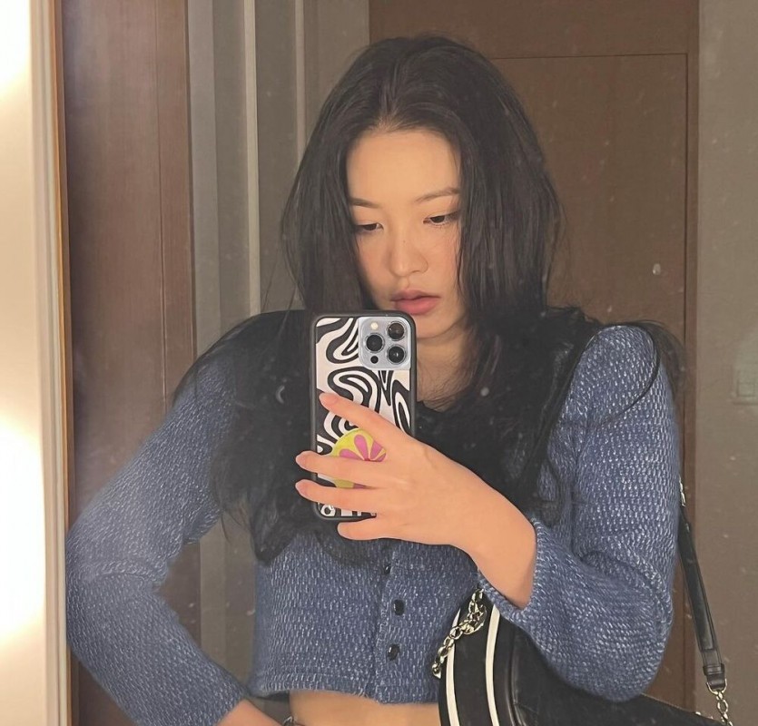 11:11 11/20/2021 ARIN BINNIE with a cropped T-shirt and jeans showing her slightly revealing her belly button.