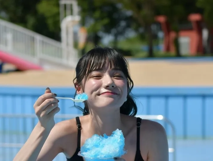 Rena Miyashita in a black bikini