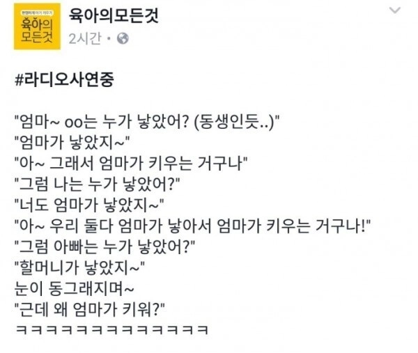 ? : Mom~ Who gave birth to your younger brother?
