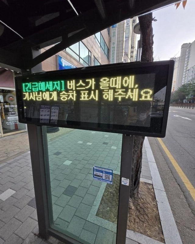 Urgent Gyeonggi-do bus stop electronic display message.