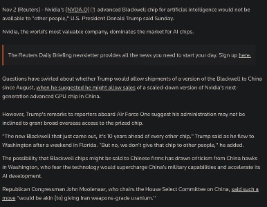 06:50 11/3/2025 [Breaking News] Trump: “NVIDIA Blackwell AI chips will not be given to ‘other countries’”