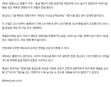70m Observation Deck and Lodging Facilities in Yedang Lake, Chungnam
