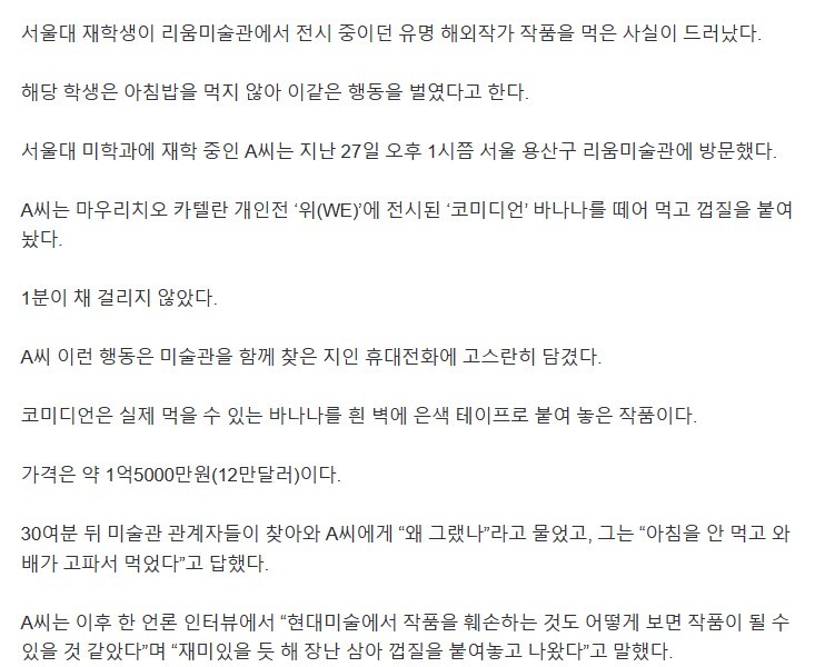 SNU student who ate 150 million won worth of bananas